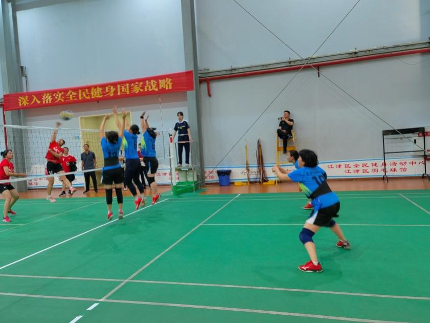 我校女子气排球队全体队员在教学工作之余,挤出时间进行配合训练,在小组赛遭遇强敌,出师不利的情况下,发扬永不言弃、努力拼搏的文理精神,在其后的附加赛、1/8比赛和1/4比赛中,配合默契,愈战愈勇,先后战胜诺浩建筑和江津教育,最终闯入决赛。