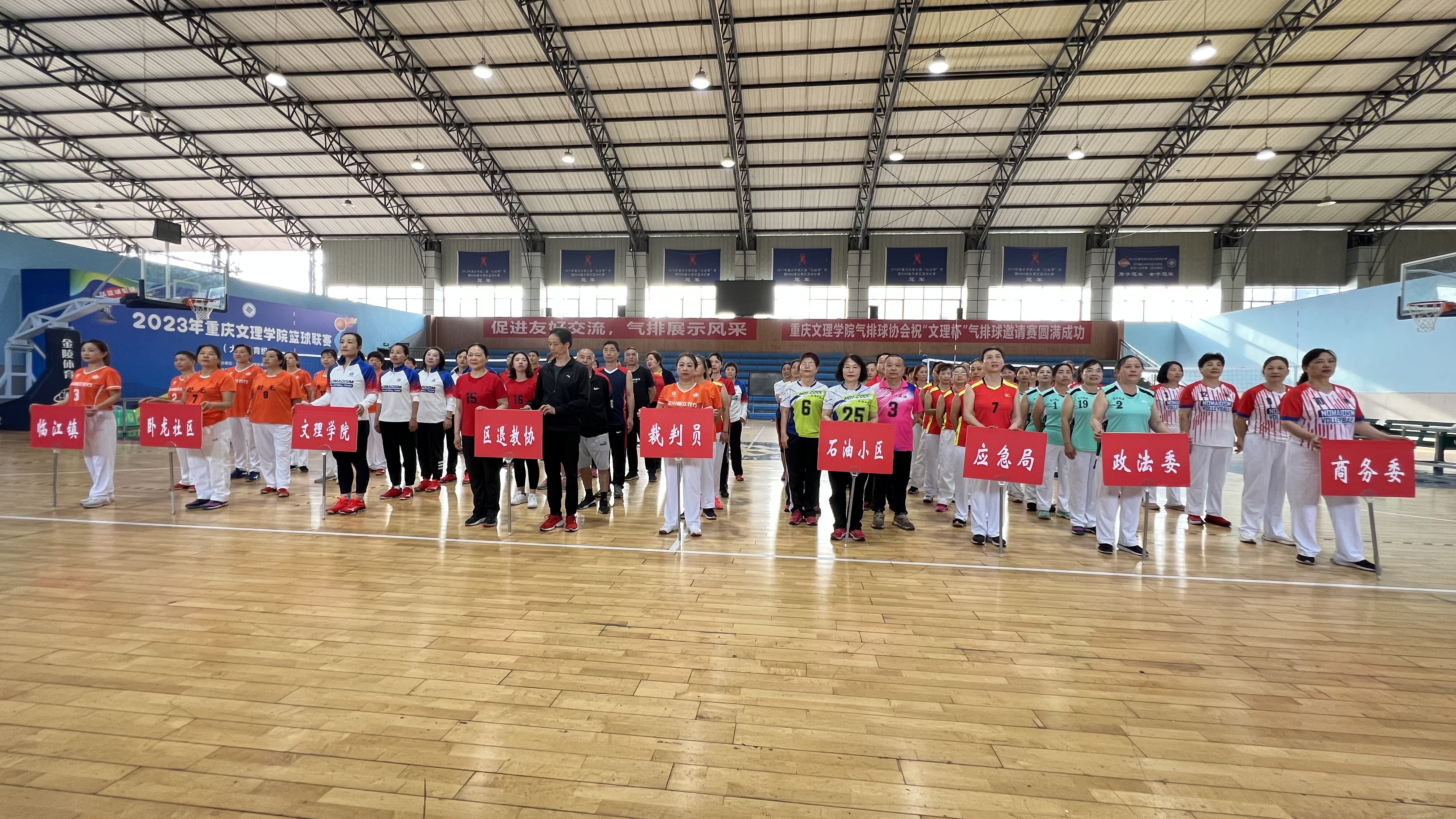 开幕式后比赛打响。本次邀请赛共有来自永川区应急管理局代表队、区商务委代表队、区政法委代表队、石油小区代表队、卧龙社区代表队、区退休教师代表队、临江镇代表队和mansion88明升代表队的八支女队和四支男队参赛,分3个小组进行单循环比赛。